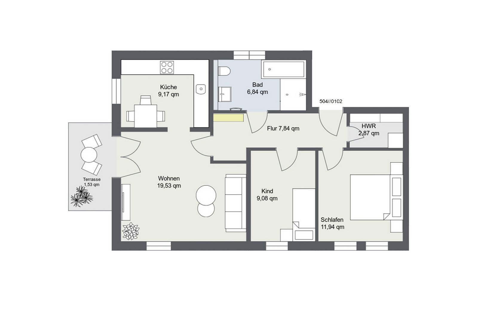Die Drei-Raum Wohnung 504 // 0102