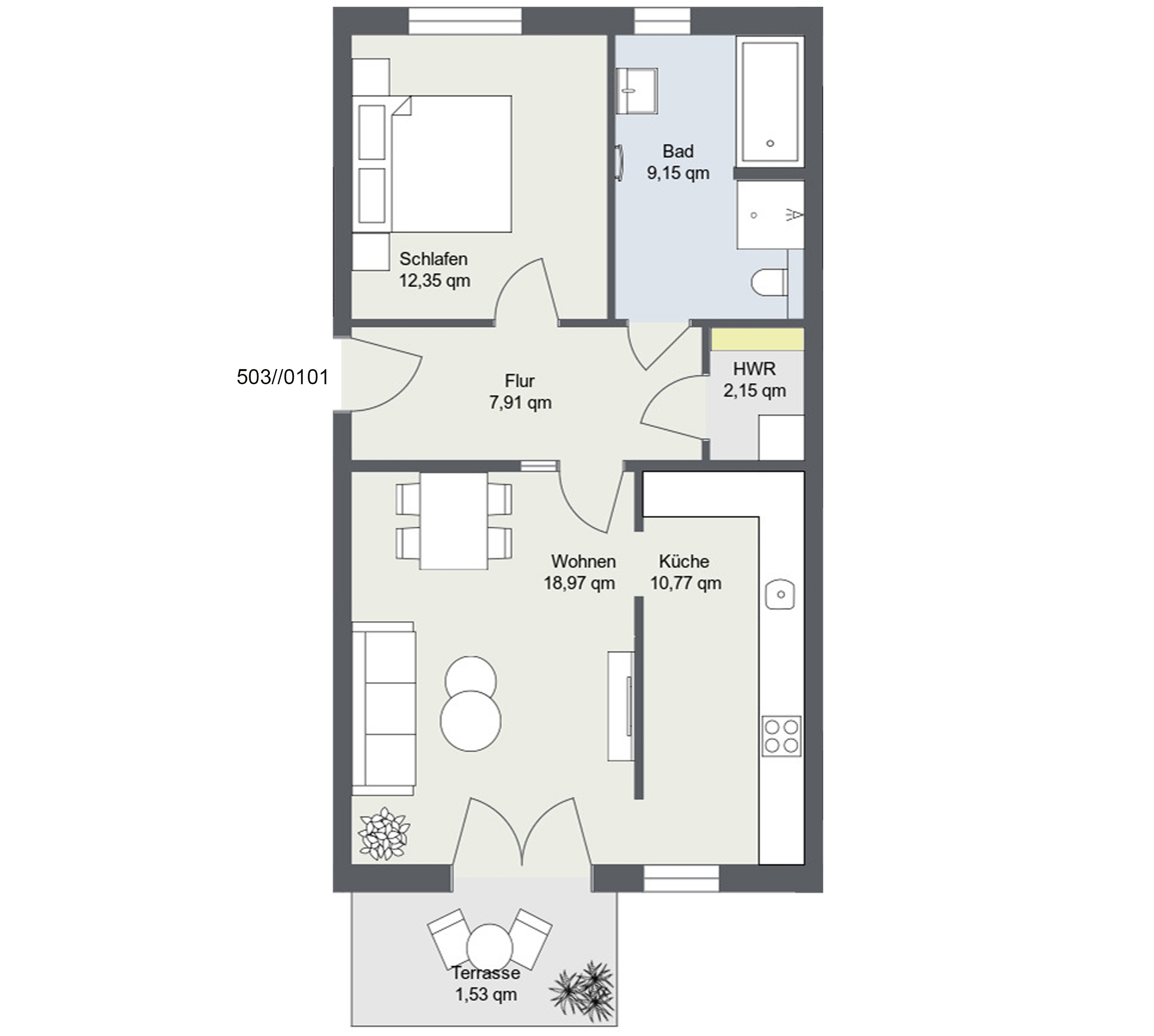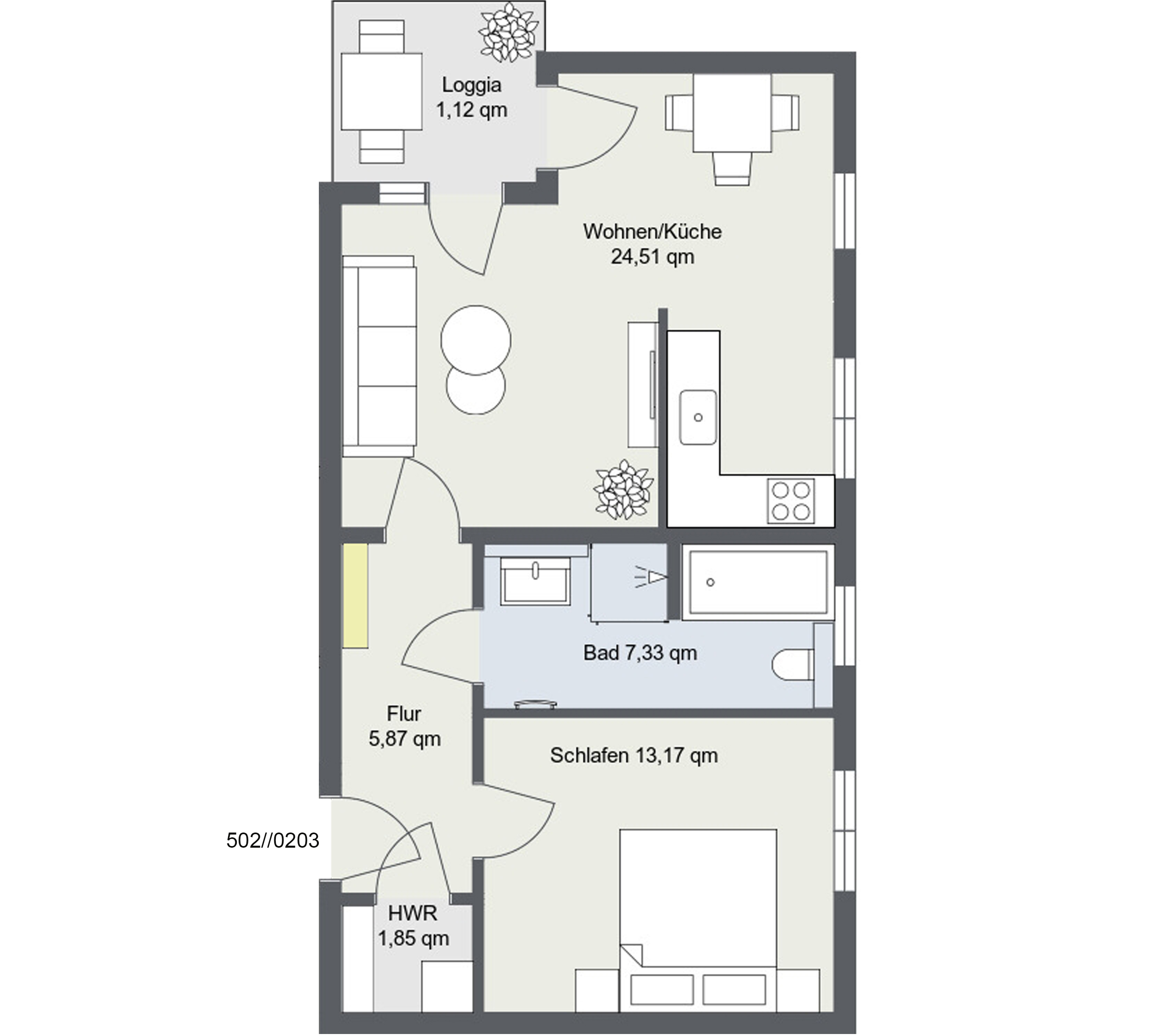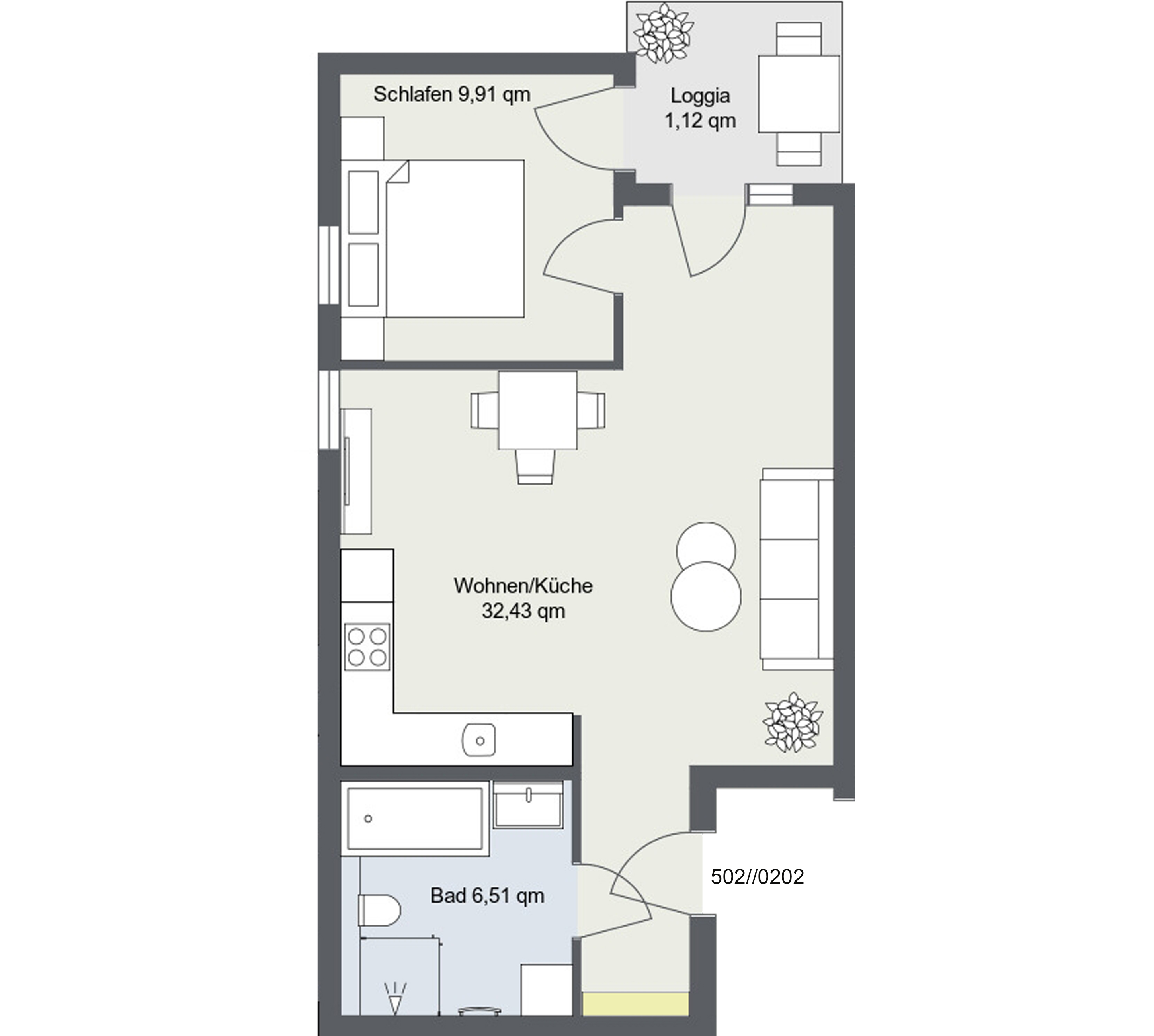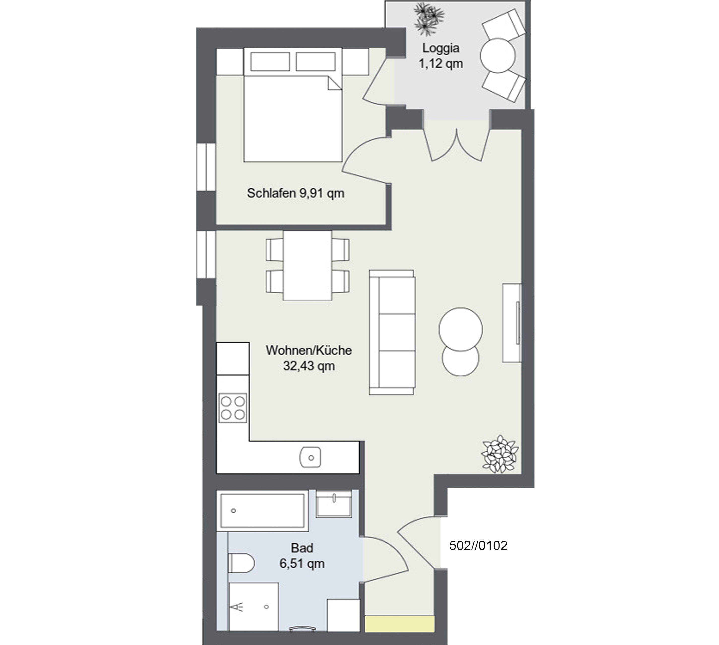 Zwei Zimmer voller Möglichkeiten – auch dies bietet das neue Wohnquartier. Auf ca. 47m²-74m² gibt es die ideale Verbindung zwischen Komfort und Praktikabilität.