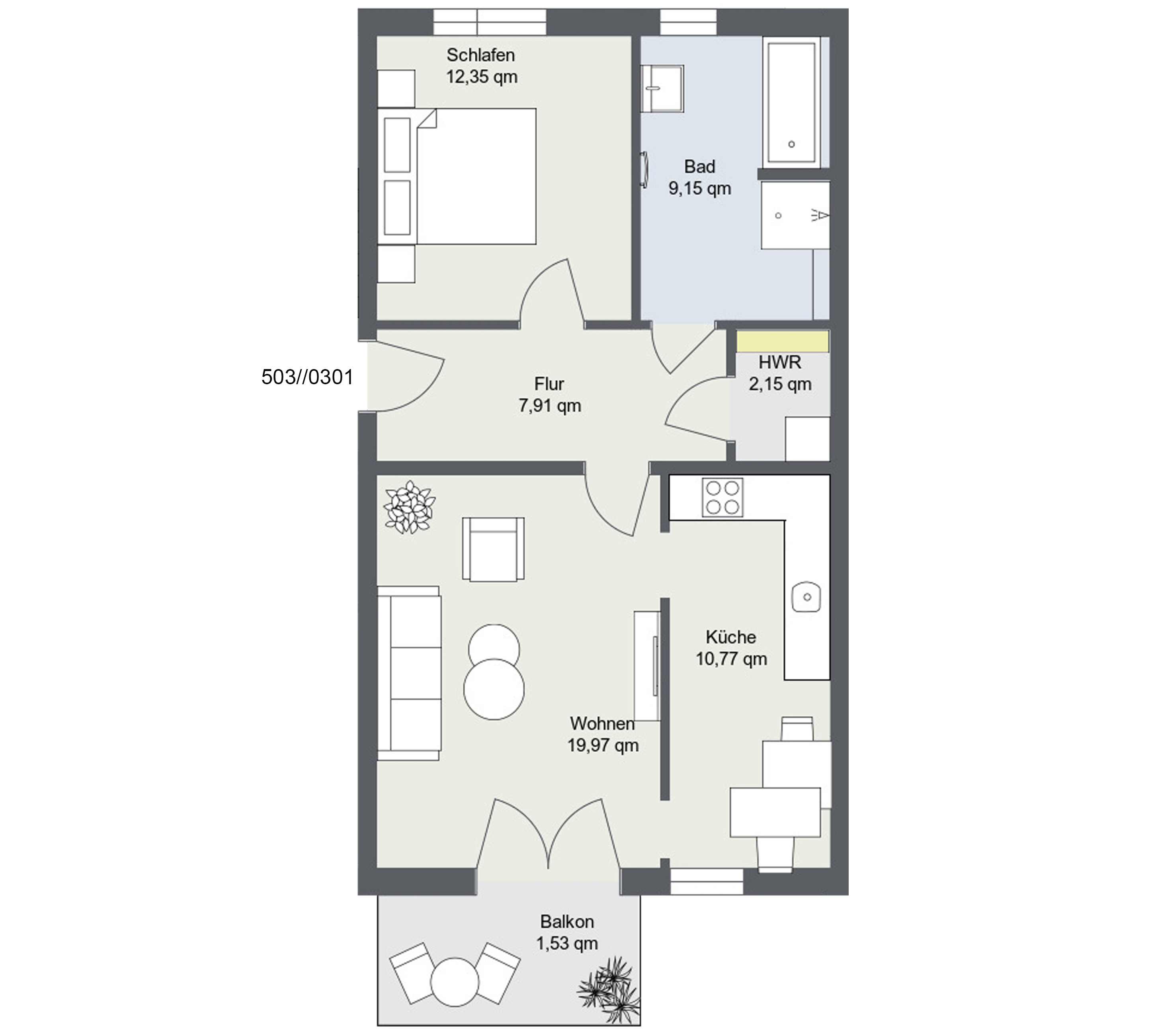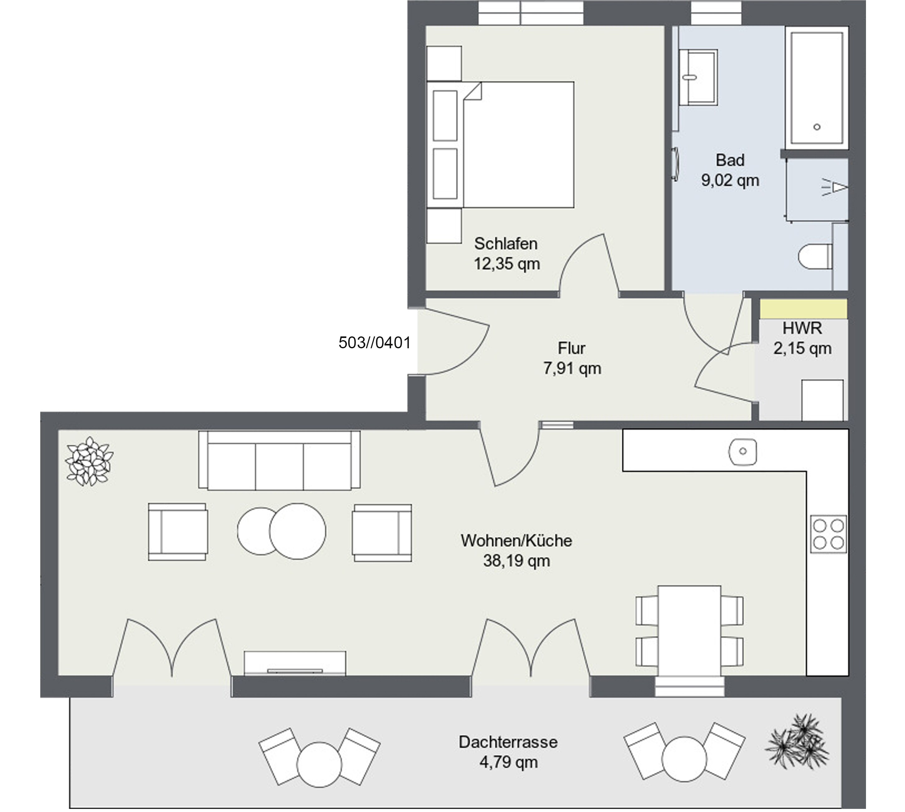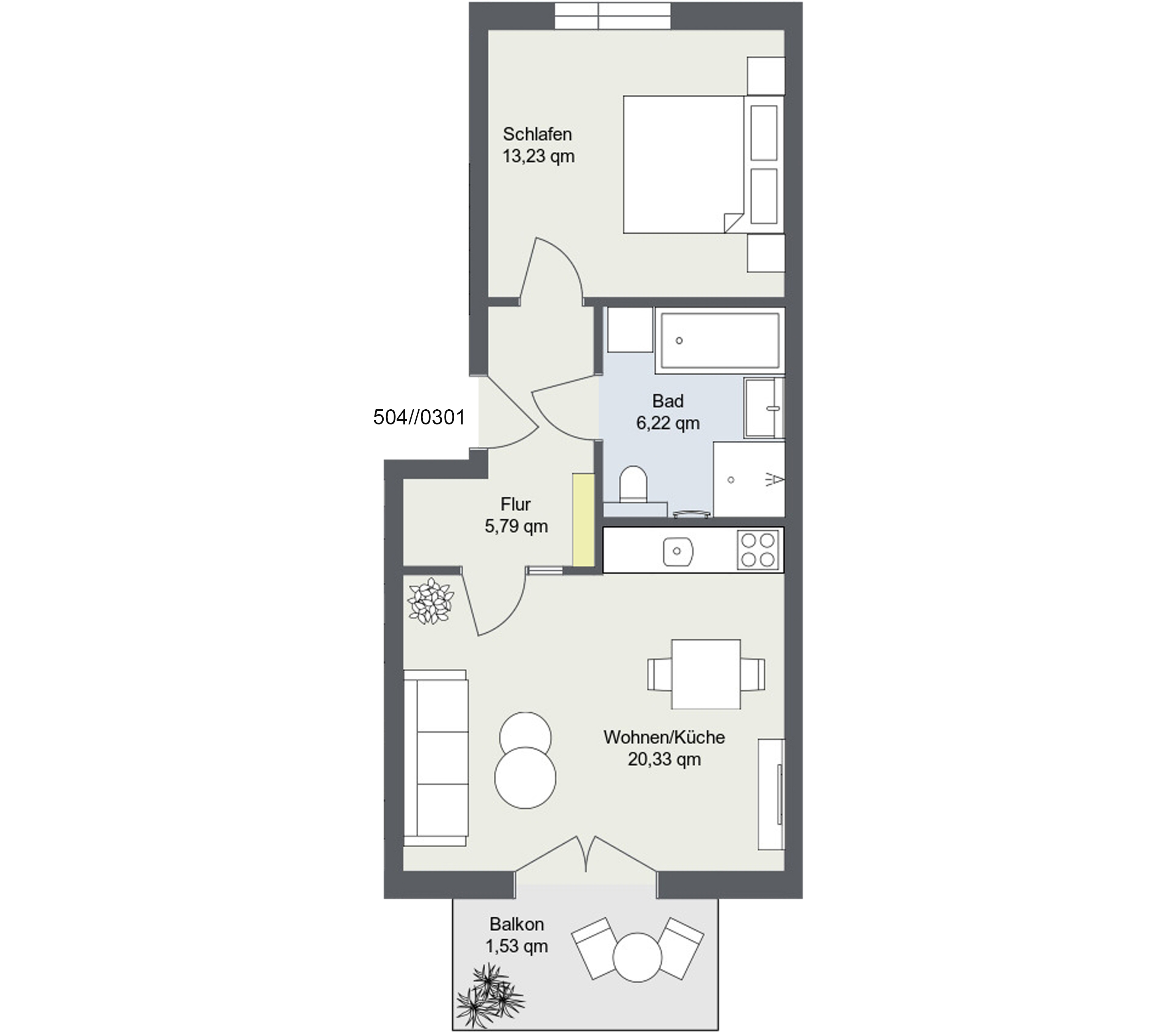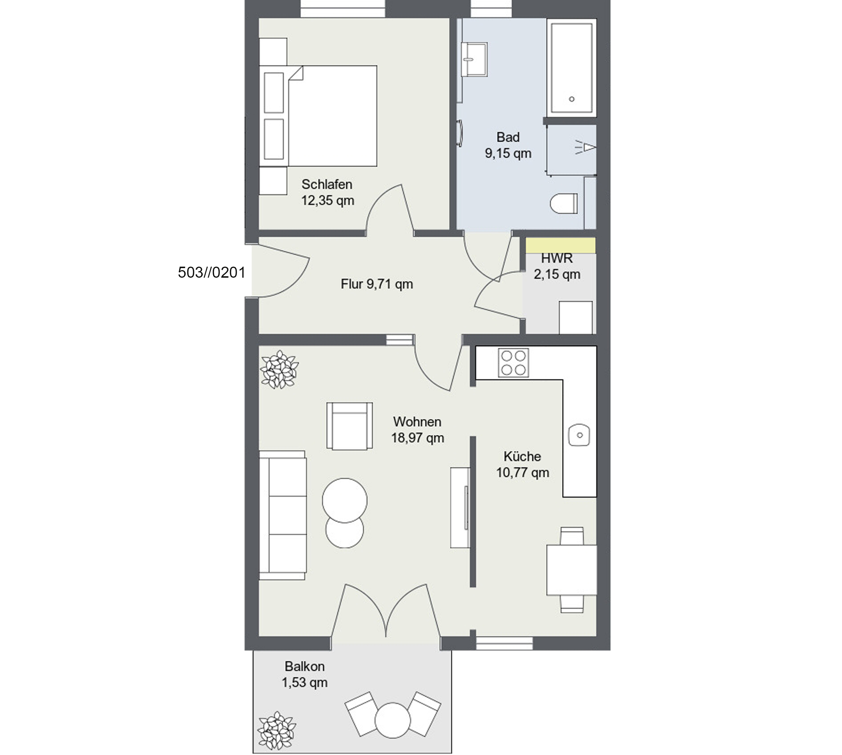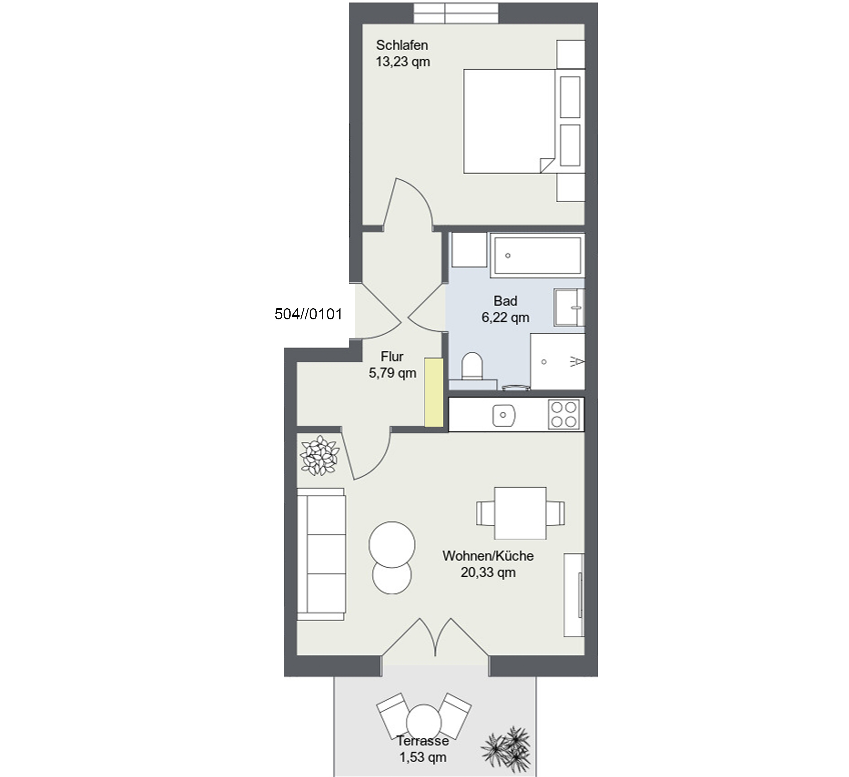 Zwei Zimmer voller Möglichkeiten – auch dies bietet das neue Wohnquartier. Auf ca. 47m²-74m² gibt es die ideale Verbindung zwischen Komfort und Praktikabilität.